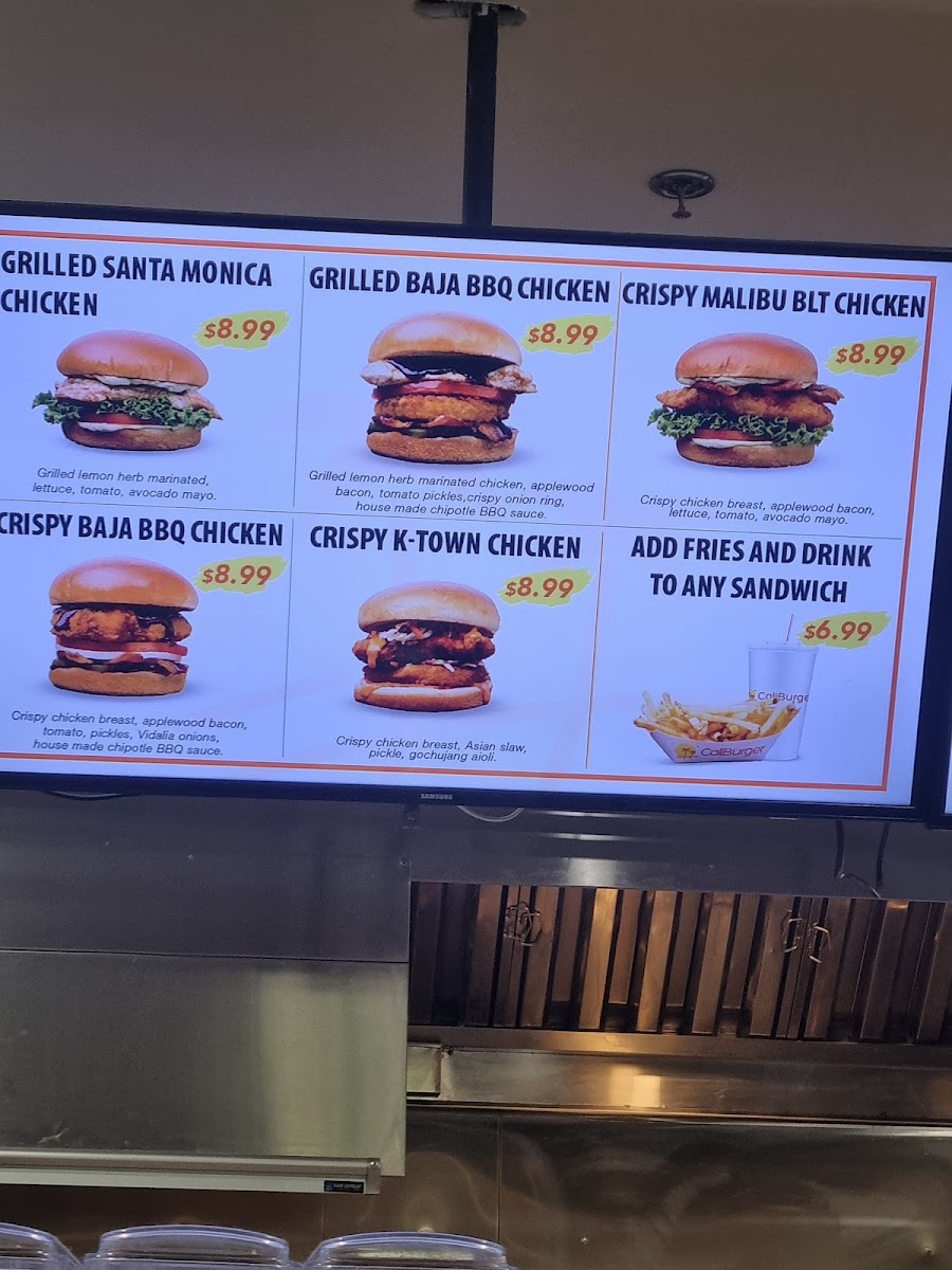 CaliBurger, located at 400 Pine St, Seattle, offers a fresh take on classic fast food. The highlight of their menu is the Cali Double, featuring two juicy beef patties layered with their signature Cali sauce, cheddar cheese, and fresh toppings, all for just $9.29. For those seeking a delicious twist, the Grilled Baja BBQ Chicken sandwich showcases lemon herb marinated chicken with crispy onion rings and chipotle BBQ sauce for $10.99.